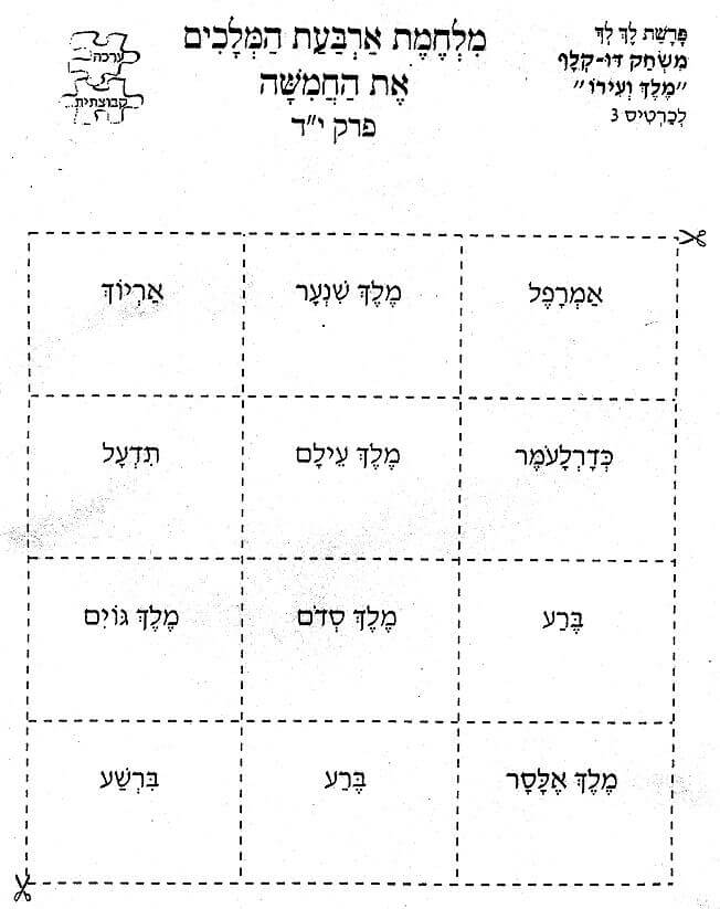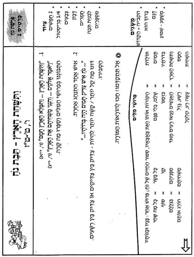 The Machon Leintegratzia has completed booklets for grades 1-3, for Bereishit (Genesis) and Shemot (Exodus) . They are now writing one for Bamidbar (Numbers). We include in this booklet examples from their work on Bereishit and Shemot, and an example from Misrad Hachinuch Sefer Bamidbar for grade 4.