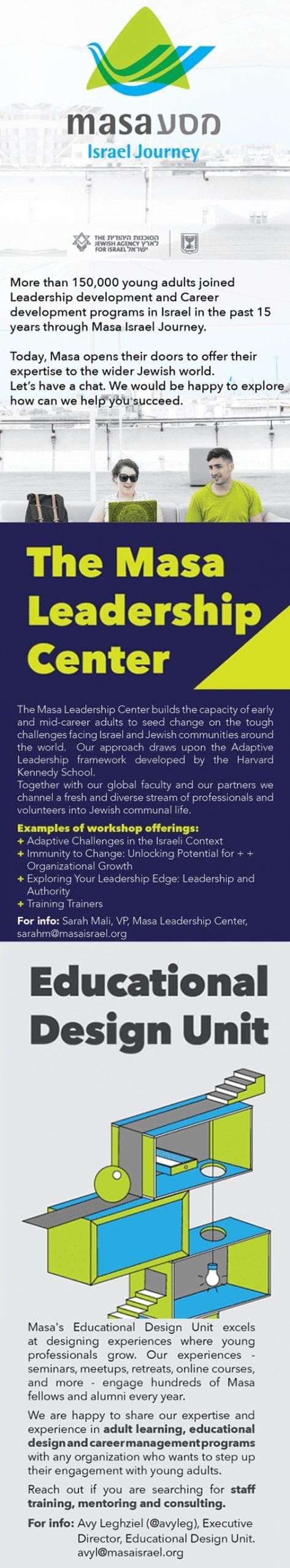 At Masa’s Educational Design Unit, we’ve been experimenting with those insights to understand how to apply them in long-term experiences for Masa fellows and alumni in Israel. In our case the classroom is not even a campus: it’s a whole country. And Israel is richer and more complex than any program can contain. How do you design a learning experience when the space is an entire country? We work with young adults, and we do our best to stay true to the guiding principles and models of adult learning. How can we design a non-touristic, authentic and productive experience that serves its participants?