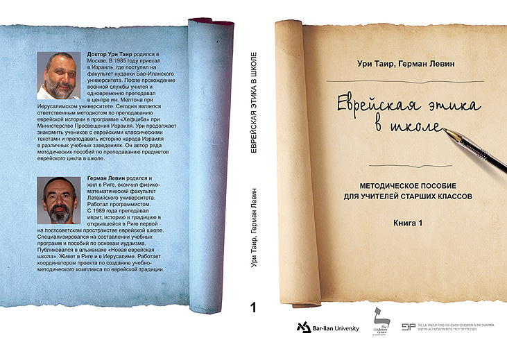 Авторы: Ури Таир и Герман Левин Первая книга "Еврейская этика в школе. Методическое пособие для учителей старших классов" увидела свет в Израиле в мае 2011 года. Тираж – 500 экз., 236 стр. Книга включает материалы по следующим темам: - Заповедь любви к ближнему, - Помощь ближнему в трудную минуту, - Цдака – путь к установлению справедливости, - Заповедь увещевания, - Месть и злопамятство? Нет, прощение! - Этика еврейского брака, - Обязанности отца по отношению к сыну, - Почитание родителей, - "Перед сединой встань!" - Этические основы жизни еврейской общины, Каждый раздел содержит поурочную разработку, вопросы и ответы для учителя, рабочие листы для учеников, домашние задания, тексты для анализа и др. Материалы пособия обсуждались на Интернет-конференциях с учителями еврейских школ Балтики и были опробованы в классе (см. "Открытый урок") До конца 2011 года директора средних еврейских школ стран бывшего СССР могут заказать бесплатно до 10 экземпляров книги. Обращаться к координатору Анне Файн по адресу anna.lookstein@gmail.com Другие материалы данной программы на нашем сайте: 1. Рабочие тетради для учеников к книге "Еврейская этика в школе" (780KB) |